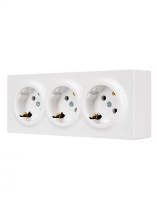 Розетка открытой установки, 3 гнезда, с заземлением, 16 А, 220 В, пластик, IP20, белая, закрытый корпус, Lezard, Leto, 752-0200-127BUP