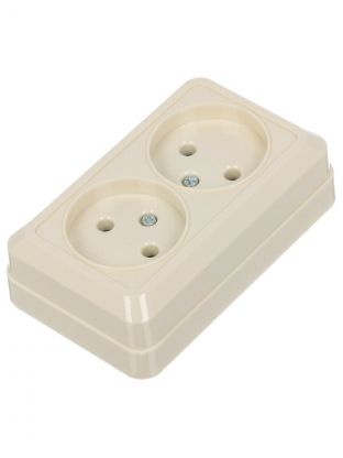 Розетка открытой установки, 2 гнезда, без заземления, 16 А, ABS пластик, IP20, слоновая кость, UNIVersal, Олимп, Б-О0102