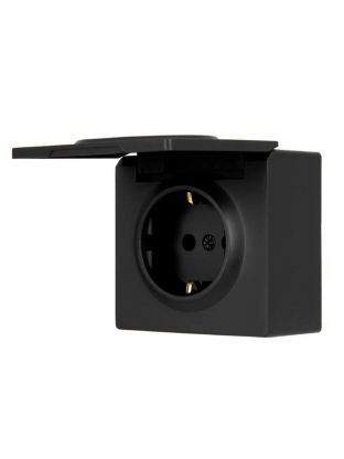 Розетка открытой установки, 1 гнездо, с заземлением, 16 А, 220 В, пластик, IP20, черная, с крышкой, Lezard, Leto, 752-4200-123B