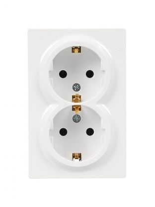 Розетка скрытой установки, 2 гнезда, с заземлением, 16 А, с защитными шторками, керамика, белая, UNIVersal, Валери, В0102x