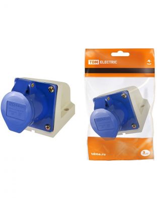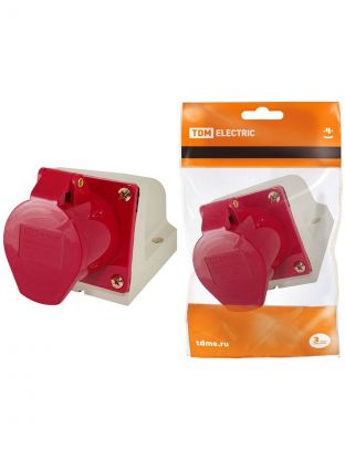 Розетка открытой установки, 1 гнездо, с заземлением, 32 А, 380 В, пластик, IP44, стационарная, 3Р+РЕ, TDM Electric, SQ0602-0006