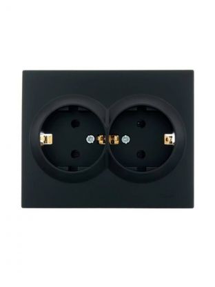 Розетка 2 гнезда, с заземлением, 16 А, 250 В, с защитными шторками, пластик, IP20, черный бархат, с защитой от детей ПБТ, Lezard, Vesna, 742-4200-178B
