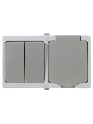 Блок комбинированный открытой установки, 1 гнездо, двухклавишный, с заземлением, 10 А, с защитными шторками, IP54, TDM Electric, Вуокса, SQ1803-0012