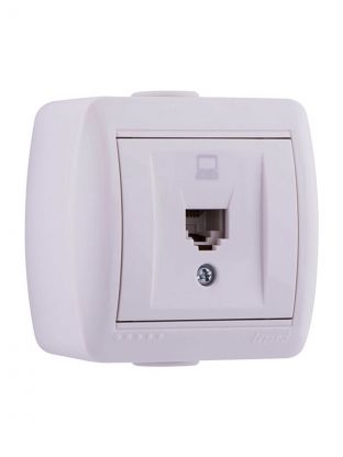 Розетка компьютерная открытой установки, без заземления, керамика, белая, Lezard, Nata, 710-0200-139