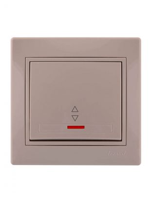 Выключатель скрытой установки, одноклавишный, без заземления, керамика, подсветка, кремовый, проходной, со вставкой, Lezard, Mira, 701-0303-114