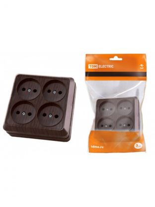 Розетка открытой установки, 4 гнезда, без заземления, 10 А, IP20, бук, 2П, TDM Electric, Ладога, SQ1801-0320