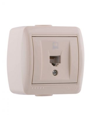 Розетка компьютерная открытой установки, без заземления, пластик, кремовая, Lezard, Nata, 710-0300-139