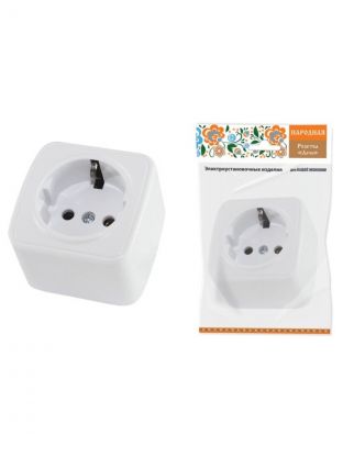 Розетка открытой установки, 1 гнездо, с заземлением, 16 А, IP20, белая, 2П+3, TDM Electric, Дача, SQ1824-0008