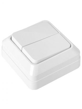 Выключатель открытой установки, двухклавишный, 10 А, термопластик, IP20, белый, General Lighting Systems, Альфа, 477002