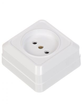 Розетка открытой установки, 1 гнездо, без заземления, 10 А, керамика, IP20, белая, 2 полюса, General Lighting Systems, Альфа, 477006