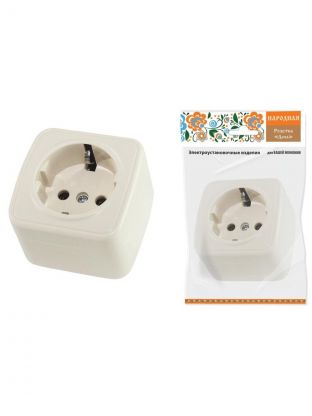 Розетка открытой установки, 1 гнездо, с заземлением, 16 А, IP20, слоновая кость, 2П+3, TDM Electric, Дача, SQ1824-0021