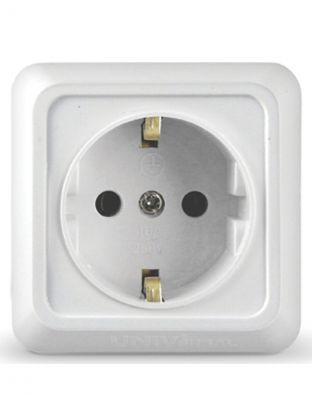 Розетка с заземлением UNIVersal Олимп О0028 служит для монтирования в офисах, домах или производственных предприятиях открытым способом. Однопостовая розетка имеет компактный пластиковый корпус универсального белого цвета.