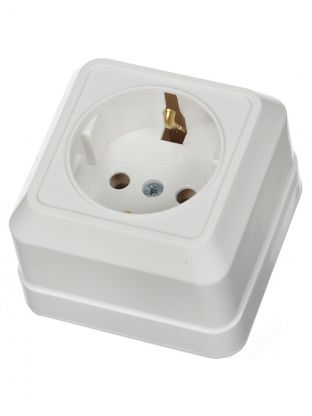 Розетка открытой установки, 1 гнездо, с заземлением, 16 А, керамика, IP20, белая, 2 полюса, General Lighting Systems, Альфа, 477007