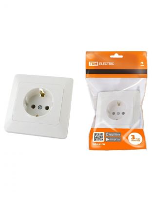 Розетка скрытой установки, 1 гнездо, с заземлением, 16 А, 250 В, ABS пластик, IP20, белая, TDM Electric, Ильмень, SQ1823-0010