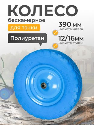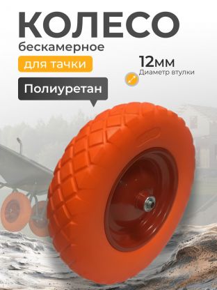 Покупка данного колеса позволяет забыть о частых заменах и ремонте, экономит время и средства при интенсивном использовании на дачном участке или стройке. Надежное и долговечное решение для любых задач, связанных с перевозкой строительных материалов, земли, удобрений и других грузов. Колесо для тачки полиуретан PU, 4.80/4.00-8, втулка D12/D16 мм – выбор для тех, кто ценит комфорт, надежность и экономию.