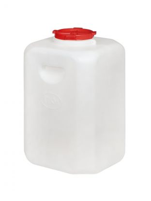 Канистра подходит для хранения питьевой воды, молока, сыпучих и жидких продуктов, а также для компоста и строительных смесей. Широкая горловина (150 мм) облегчает заливку и чистку.