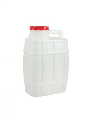 Канистра выполнена из прочного пищевого пластика, диаметр горловины — 110 мм, что удобно для заливки и чистки.