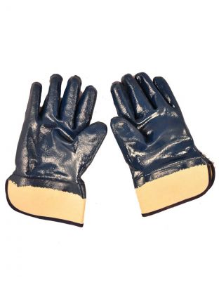 Перчатки маслобензостойкие, х/б, нитриловый облив, без рисунка, синяя основа, манжет-крага
