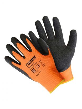 Перчатки акрил, вспененный латексный облив, без рисунка, размер 10 (XL), оранжевая основа, утепленные, Fiberon, европодвес