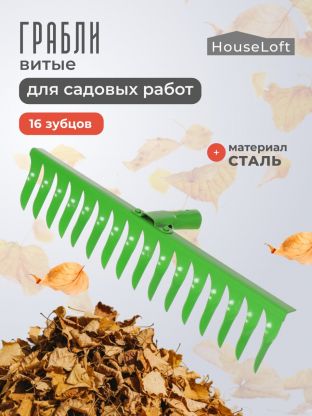 Грабли витые, 16 зуб, сталь, 48 см, HouseLoft, без черенка, садовые, 00-00002615