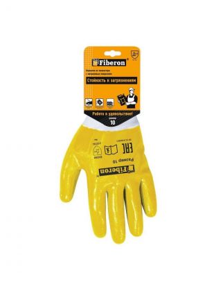 Перчатки полиэстер, нитриловый облив, без рисунка, размер 10 (XL), желтая основа, стойкость к загрязнениям, Fiberon