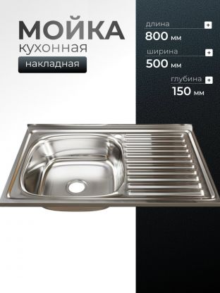 Мойка кухонная накладная Mixline 800х500 мм левая — нержавеющая сталь 0.6 мм, большой размер и удобство для кухни любого формата. Решение для тех, кто ищет долговечность и стиль по доступной цене.