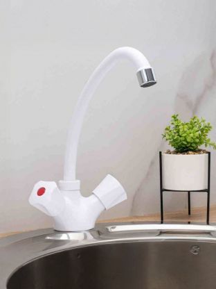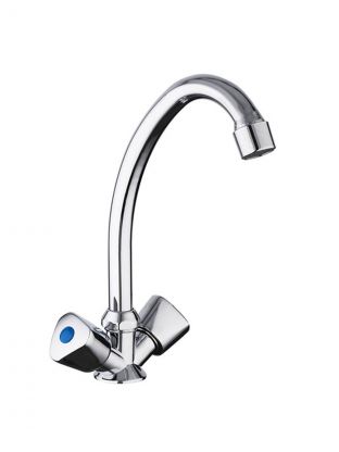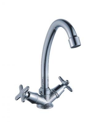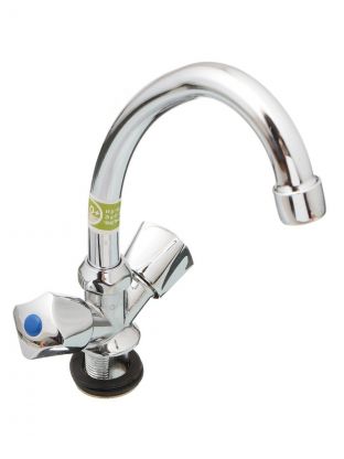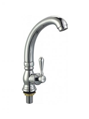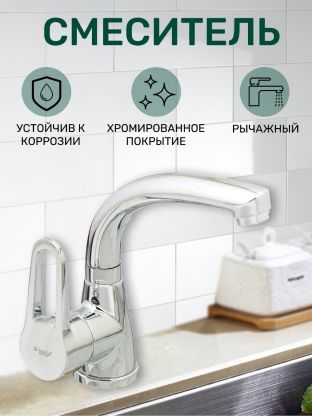 Корпус из силумина, поворотный средний излив 13,5 см, резиновая кран-букса — надежность и удобство эксплуатации