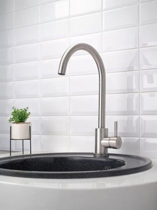 Часто спрашивают: «Как выбрать смеситель для кухни с высоким изливом?», «Чем отличается поворотный смеситель от обычного?», «Подойдет ли для фильтра?» — модель SUS124-017FL отвечает всем этим требованиям: один монтажный проем (35 мм), стандарт подключения 1/2", современный стиль, матовая поверхность. В отличие от пластиковых аналогов, нержавеющая сталь не требует сложного ухода и не боится перепадов температуры. Если вы ищете, какой смеситель купить недорого для дачи или квартиры, этот вариант выгодно отличается сочетанием цены, качества и простоты установки.