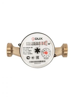 Счетчик воды DUX СВ 15-110/1 — универсальное решение для точного учета расхода воды в квартире, доме или на даче. Надежность 5 лет, монтаж без лишних затрат.