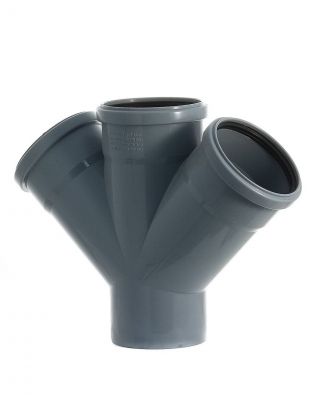 Тройник канализационный предназначен для монтажа разветвления трубопроводов в системах внутренней канализации. В качестве уплотнителей используются резиновые кольца манжетного типа с распорным вкладышем, соответствующие требованиям DIN 4060. Монтаж желательно производить с применением специальной силиконовой смазки.