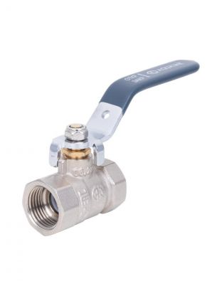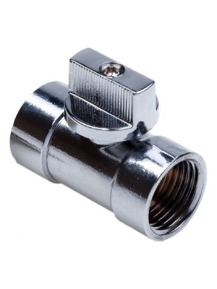 Диаметр подключения — 1/2", тип присоединения — г-г (гнездо-гнездо), прямой корпус, управление — ручка-флажок.