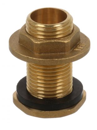 Корпус переходника полностью выполнен из латуни, что обеспечивает устойчивость к коррозии и долгий срок службы. Наружная резьба 3/4" подходит для стандартных фитингов.