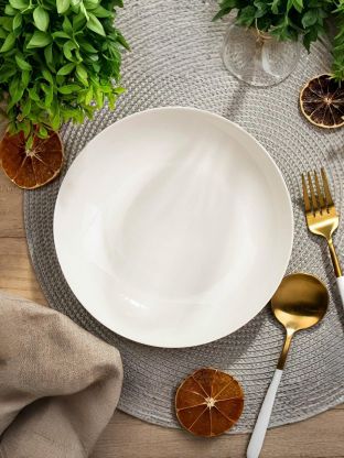 Современный минимализм: белая круглая форма без рисунка легко впишется в любой интерьер кухни или дачи