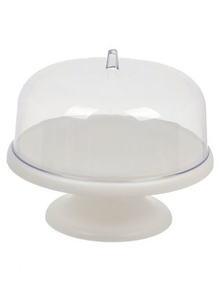 Тортница пластик, 15.5х29 см, круглая, с крышкой, на ножке, белая, Idea, М1119