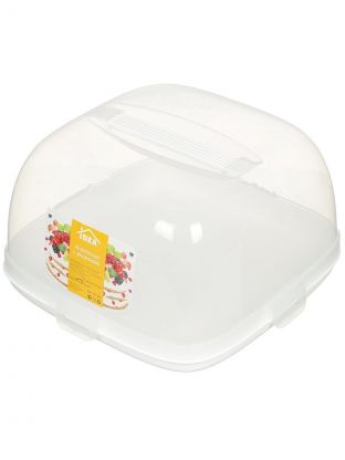 Тортница пластик, 24.5 см, квадратная, с крышкой, белая, с защелками, Idea, М 1121