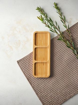 Менажница из бамбука Vetta — стильное решение для сервировки закусок, орехов, фруктов и соусов. Прямоугольная форма с тремя секциями позволяет удобно разделять разные продукты, сохраняя их вкус и свежесть. Натуральный бамбук придаёт изысканный вид и подчёркивает экологичность выбора. Компактный размер 25х9.5 см отлично впишется в любой интерьер кухни или дачи, а лёгкость ухода сэкономит время. Идеальный вариант для уютных ужинов и праздничных застолий.