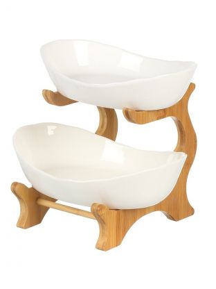 Блюдо керамика, бамбук, сервировочное, 23х20.3 см, двухъярусное, Y4-8301