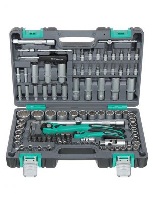 Набор инструментов Stels 14107 состоит из 142 предметов и является оптимальным выбором как для обычного автолюбителя, так и для специалиста автосервиса. Размещенный в кейсе из жесткого противоударного пластика комплект можно держать в гараже или возить с собой в автомобиле, производя с его помощью оперативное устранение неисправностей прямо в пути. В комплект вошла разнообразная оснастка - биты, биты-вставки, головки, а также обилие ручного инструмента - комбинированные ключи, ключи-шестигранники, отвертки, пассатижи и переставные клещи, трещотки и воротки, молоток.