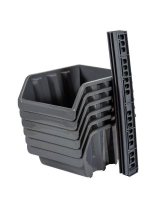 Набор ящиков для метизов, 24.5х17х12.5 см, пластик, 6 шт, с планкой, серо-свинцовый, BR3753СРСВИНЦ
