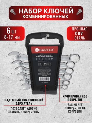 Ключ комбинированный, 6 предметов, Bartex, 8-17 мм, CrV, подвес