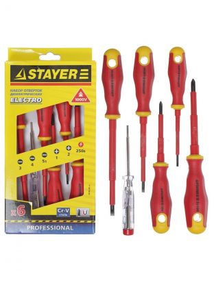Набор отверток диэлектрический, 6 предметов, Stayer, CrV сталь, тестер, 25145-H6_z01