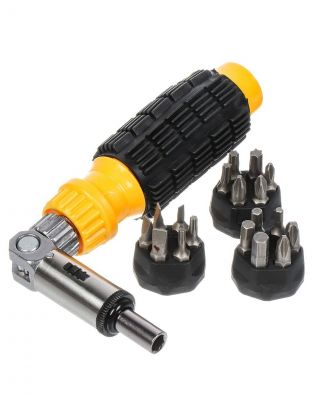 Реверсивная отвертка с битами Bartex — универсальный инструмент для дома и дачи. Комплект из 16 предметов, включая плоские, крестовые и торцевые насадки, идеально подходит для мелкого ремонта и сборки мебели. Прочная CrV сталь обеспечивает долгий срок службы, а удобная пластиковая ручка гарантирует комфорт в работе.