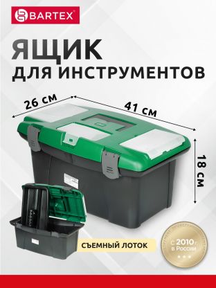 Ящик для инструментов, 16 '', 41х26х18 см, пластик, Bartex, морозостойкий замок, в ассортименте, 27802201