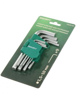 Набор ключей шестигранный, 9 предметов, Волат, 1.5-10 мм, хром, короткий, 11015-09