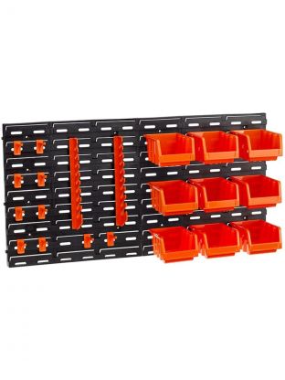 В комплекте два ящика размером 12 и 19 дюймов, материал — прочный пластик, цвет — черно-оранжевый, артикул BR6676ЧРОР.