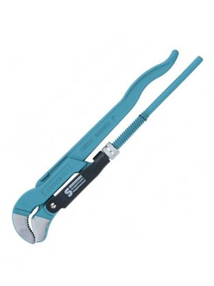 Ключ трубный рычажный типа S усиленной конструкции, применяется при повышенных нагрузках. Предназначен для захватывания и вращения труб и соединительных частей трубопроводов. Изготовлен из высококачественной хромованадиевой стали. Имеет порошковое антикоррозийное покрытие. Губки дополнительно закалены токами высокой частоты до твердости 57–60 HRС. Прогрессивная форма зуба с наклоном против направления вращения обеспечивает самоблокируемый захват деталей. Верхняя ручка имеет выштампованный Т-образный профиль. Регулировочная гайка снабжена стопорным кольцом.