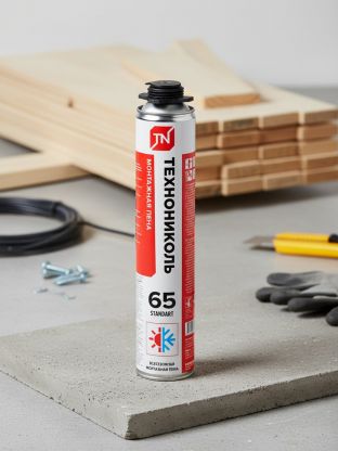 Пена монтажная Технониколь Standart 65, 1000 мл: всесезонная, профессиональная, высокая адгезия — надёжный выбор для любых работ по утеплению и герметизации.