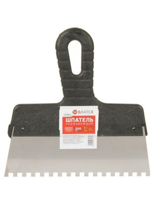 Шпатель нержавеющая сталь, 200 мм, зубчатый, зуб 6х6, рукоятка пластик, Bartex