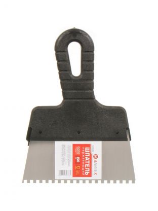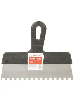 Шпатель нержавеющая сталь, 250 мм, зубчатый, зуб 8х8, рукоятка пластик, Bartex