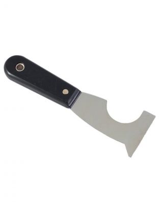 Многофункциональный шпатель 5 в 1 РемоКолор 12-0-500 оснащен полотном из углеродистой стали. Модель предназначена для зачистки труб и труднодоступных поверхностей от краски и прочих покрытий.